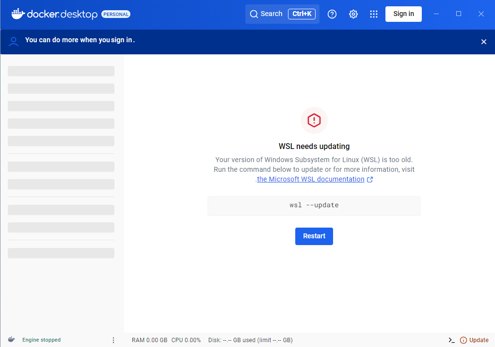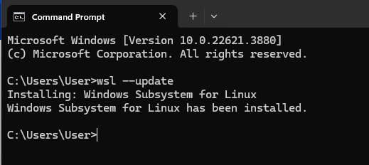 If you get a “WSL needs updating” error, open Command Prompt and type wsl --update.