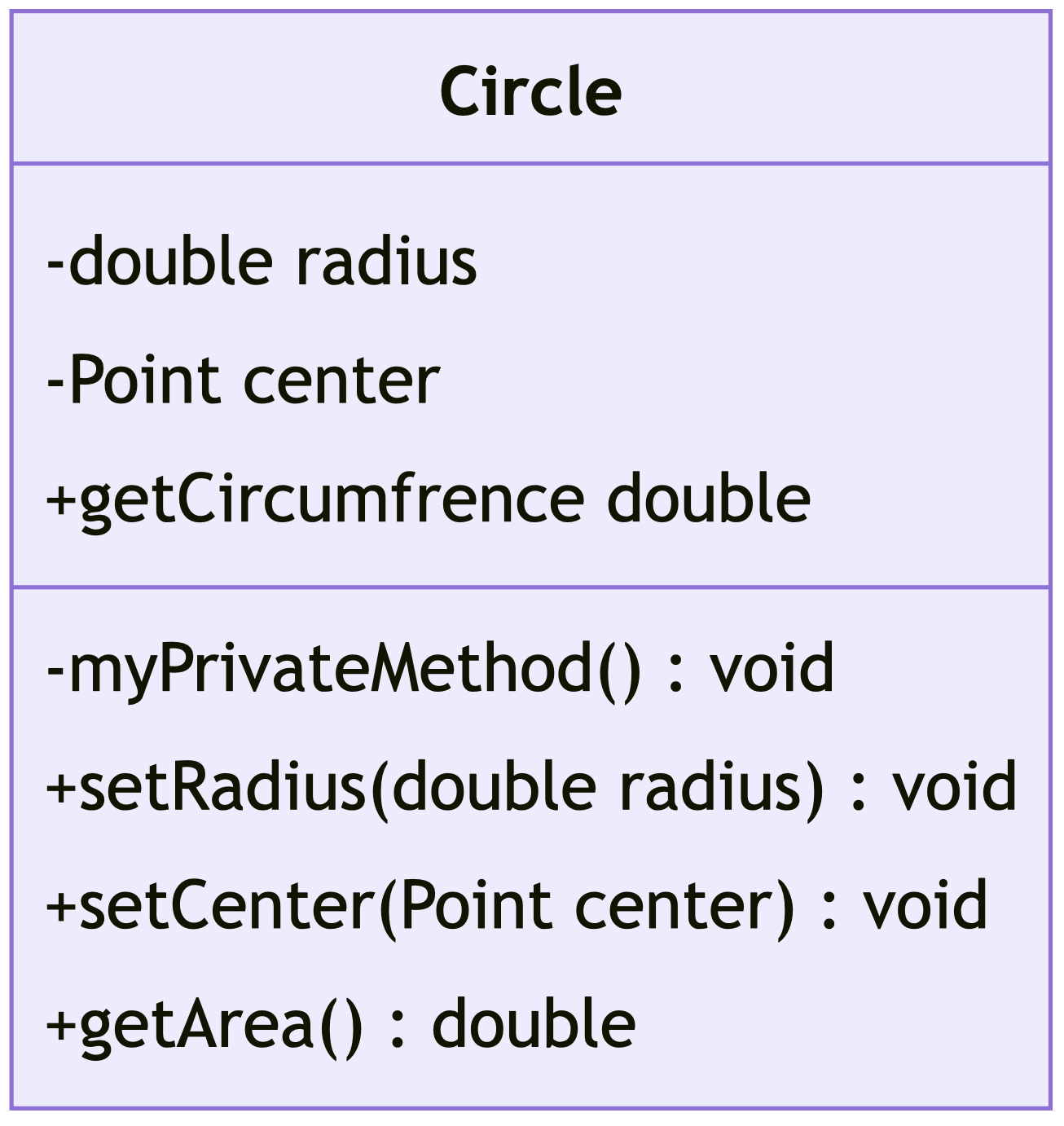 And here is how this Circle class would be represented in UML notation: